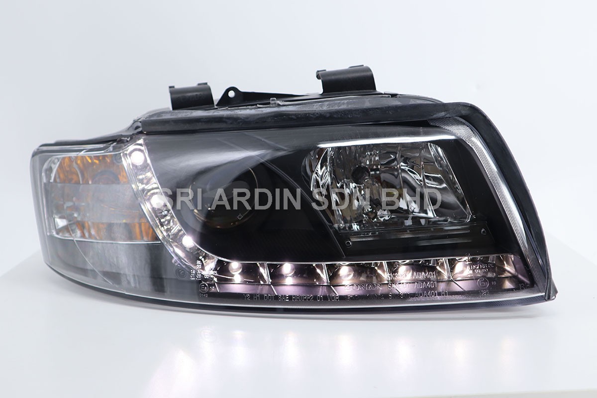 AUDI A4 B6 01 BLACK PROJECTOR HEADLAMP w BAR & LED