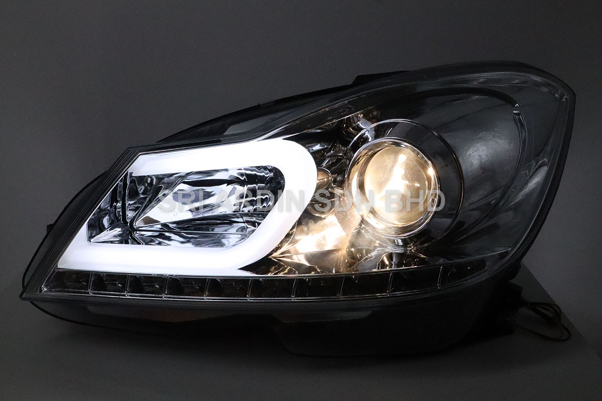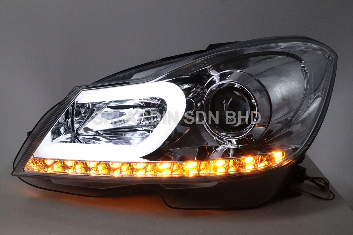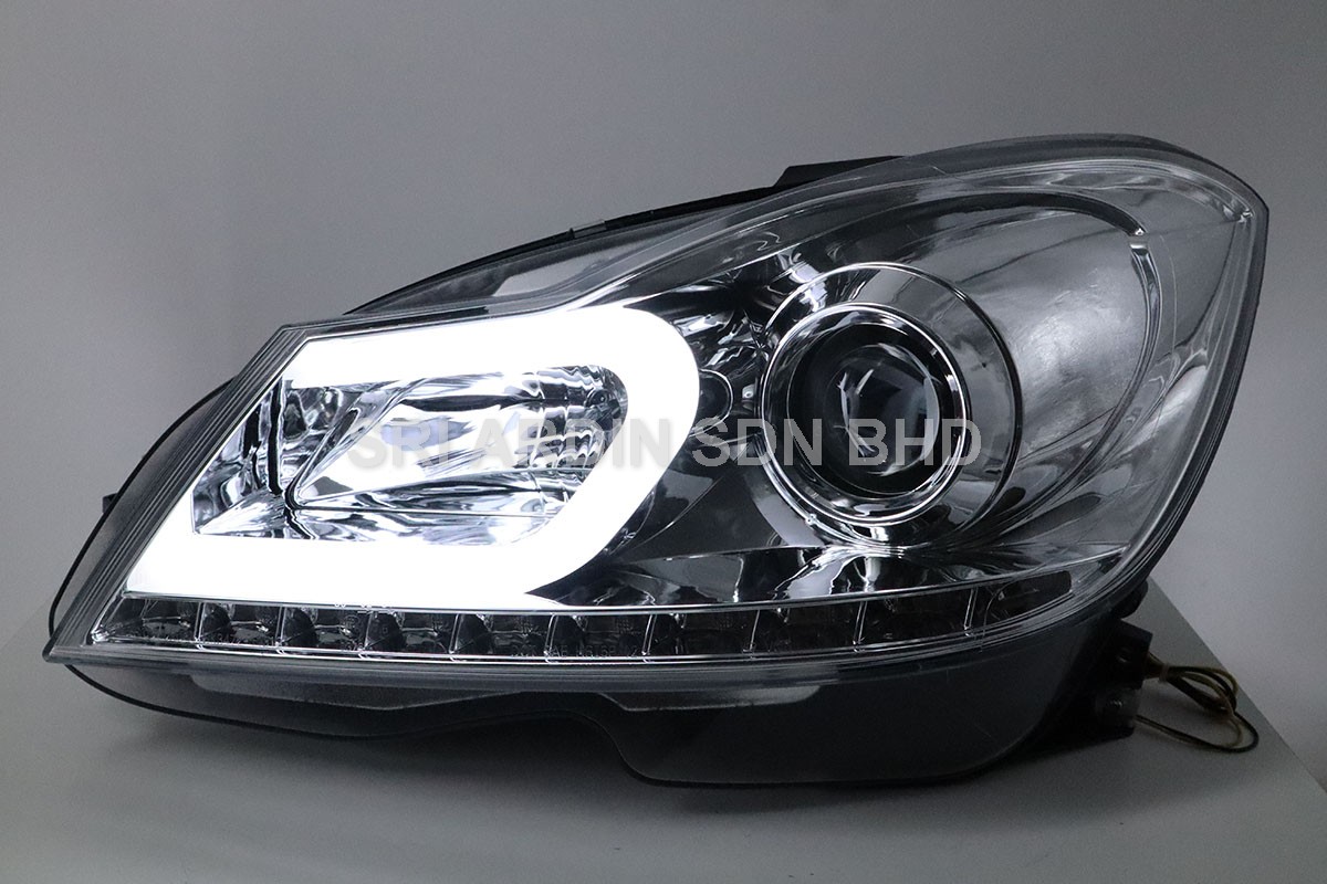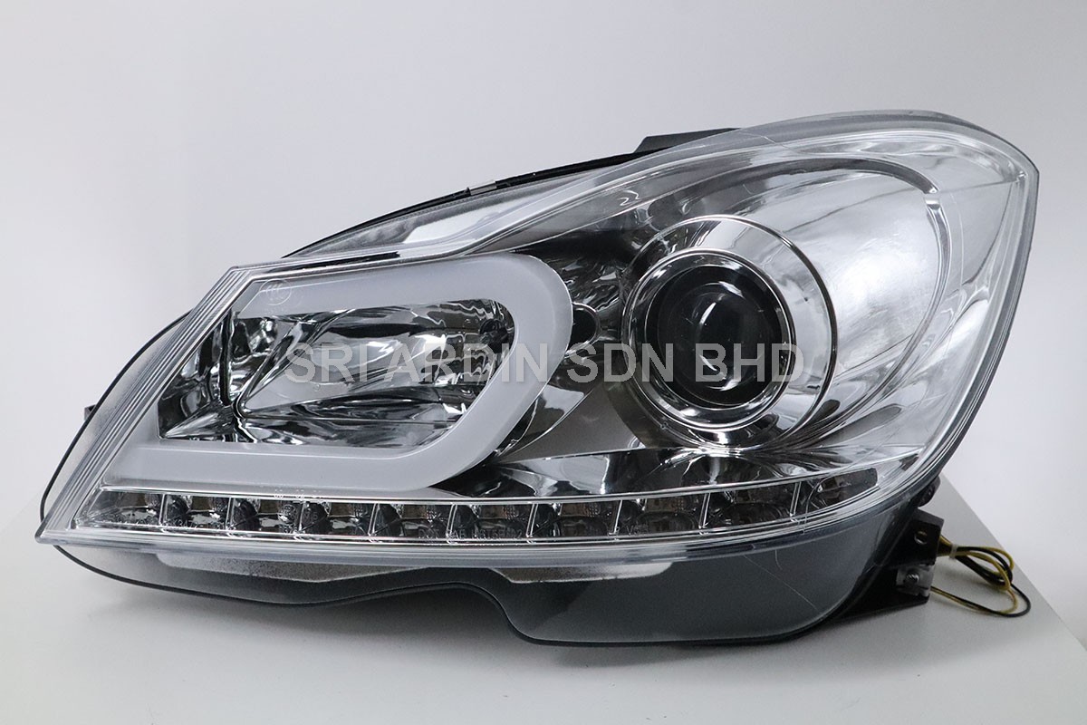 Mercedes C Class W204 12-15 Chrome Projector Headlamp w Light Bar Driving Lamp