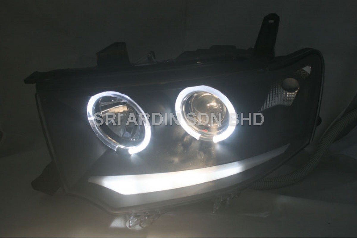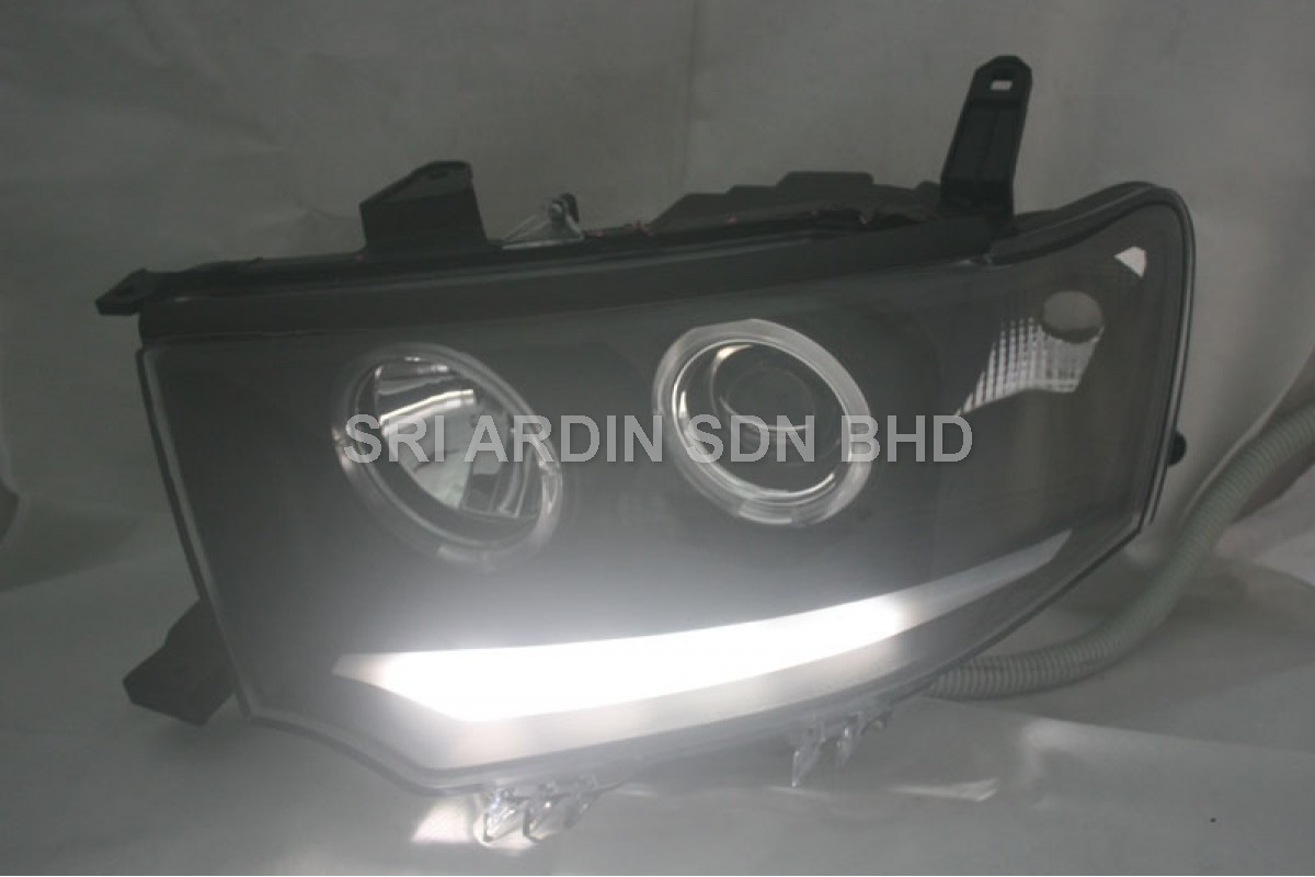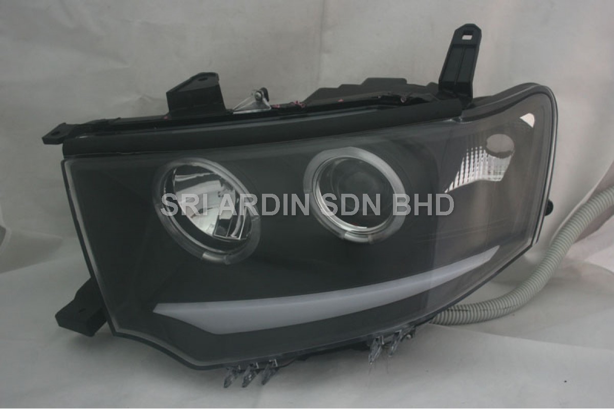 Mitsubishi Pajero 09-15 Black Projector Headlamp w Ring & Bar