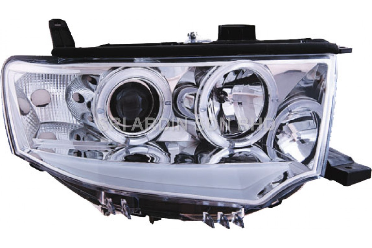 Mitsubishi Pajero 09-15 Chrome Projector Headlamp w Ring & Bar
