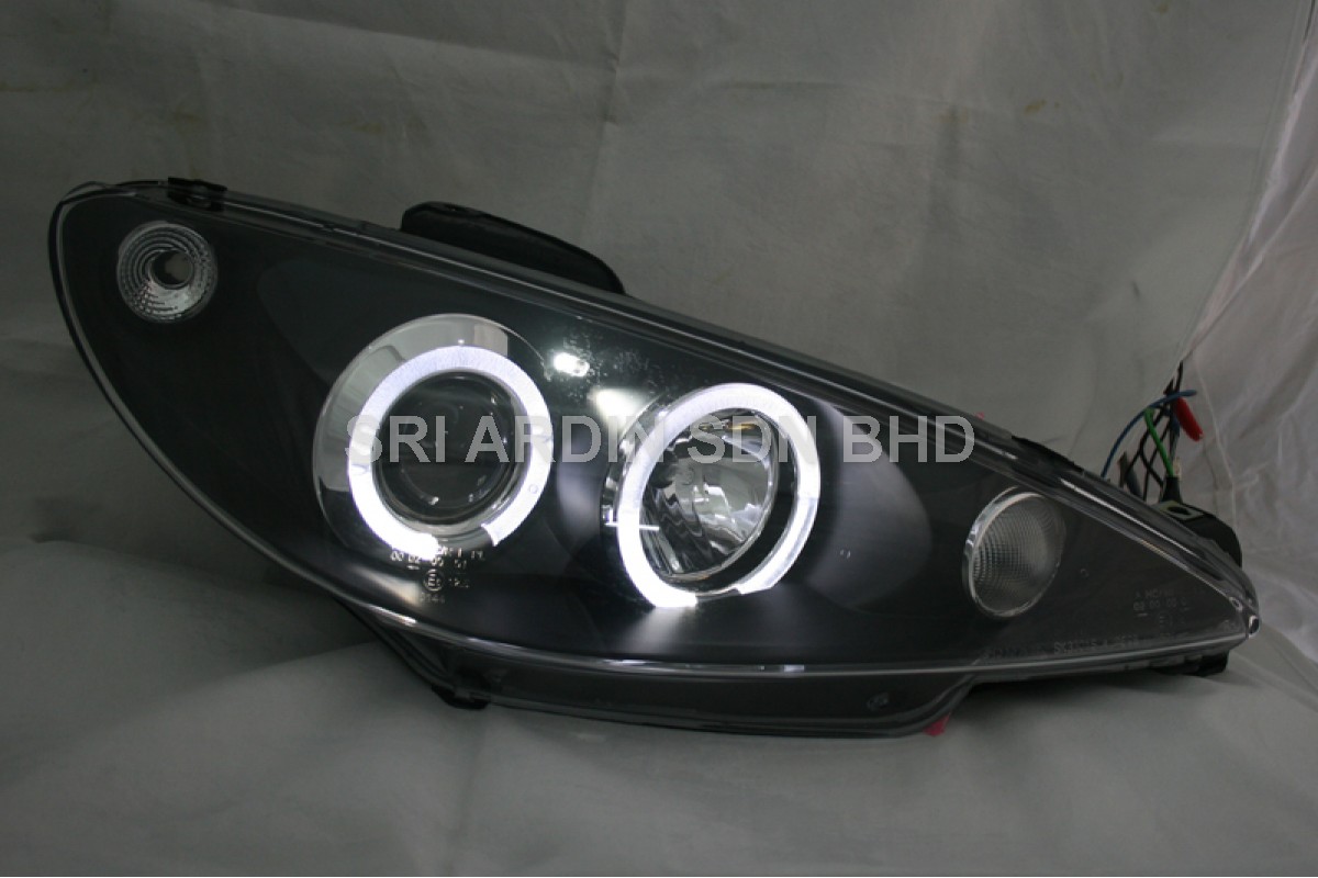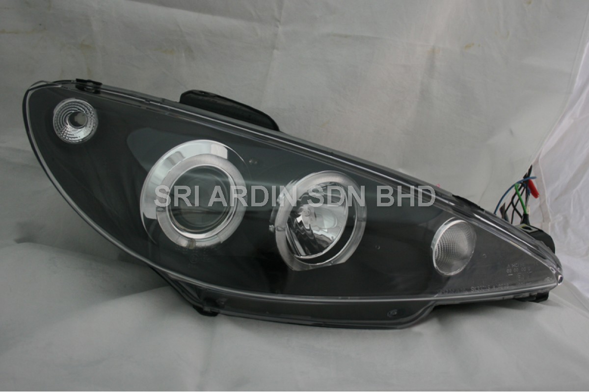 Peugeot 206 98- Black Projector Headlamp w Ring