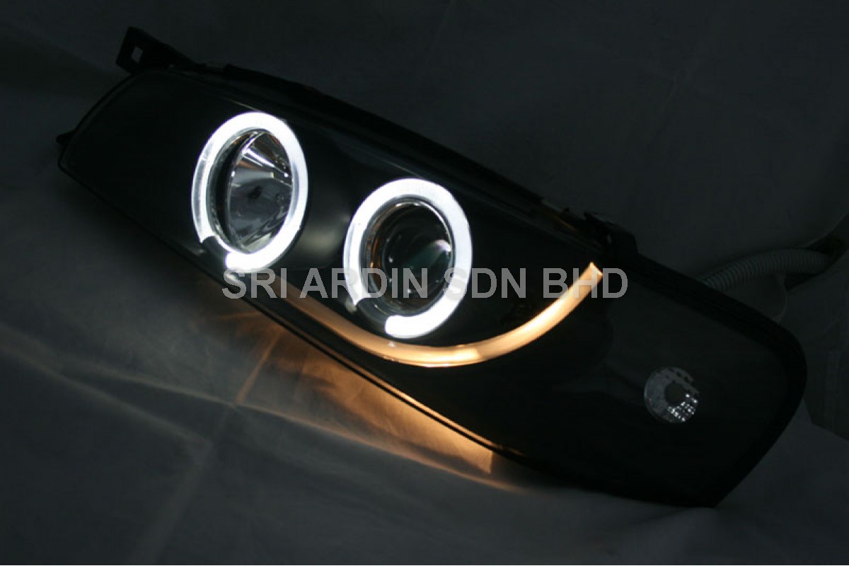 Subaru Impreza 93-00 Black Projector Headlamp w Ring