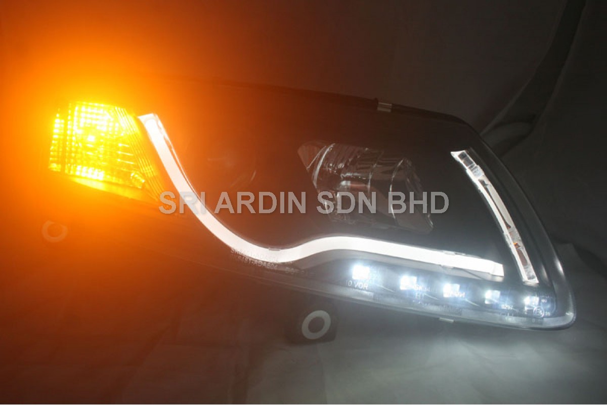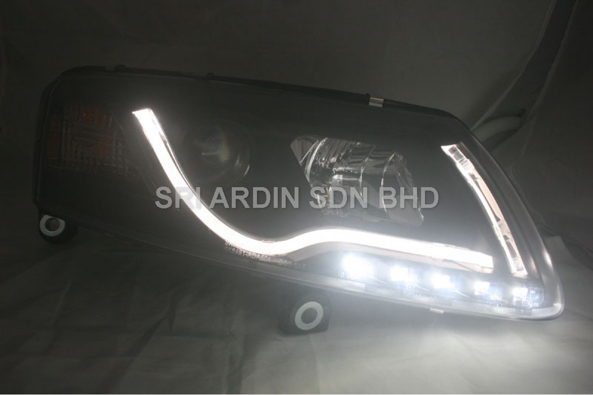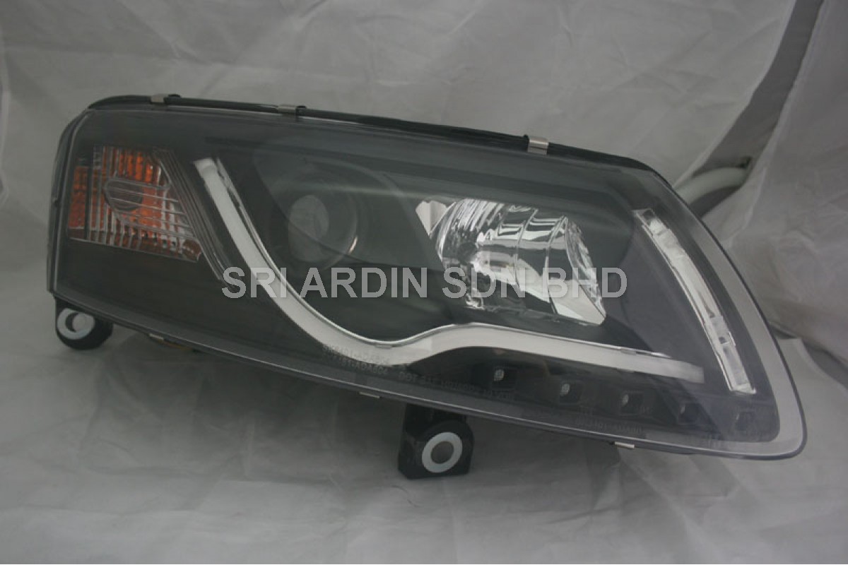 AUDI A6 04-07 Black Projector Head Lamp w Bar & LED