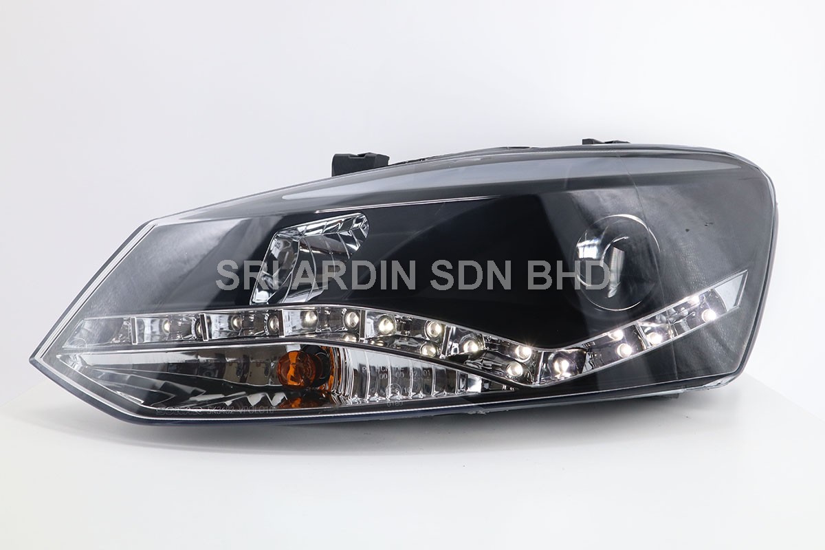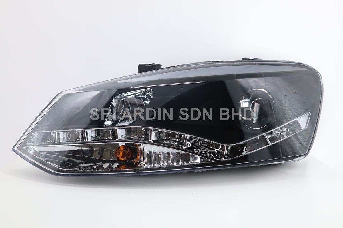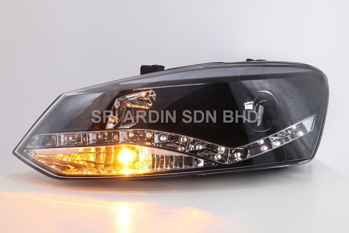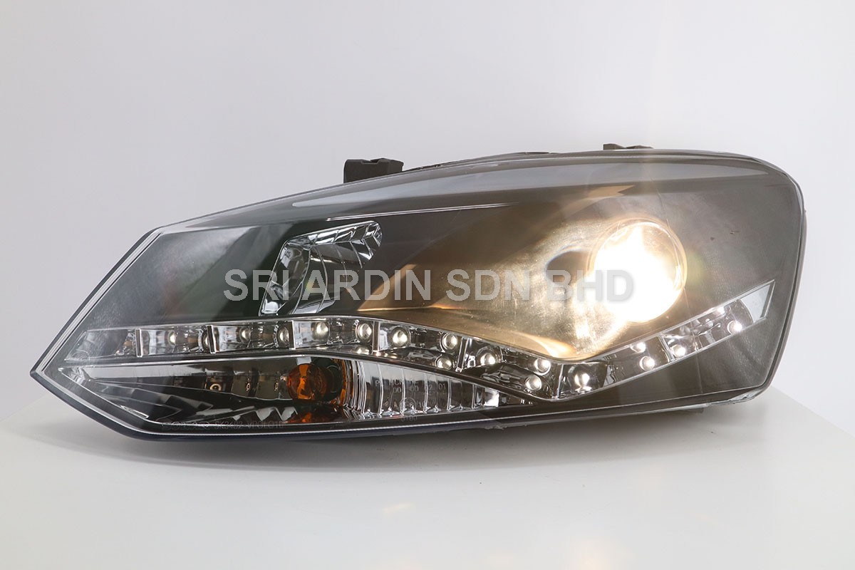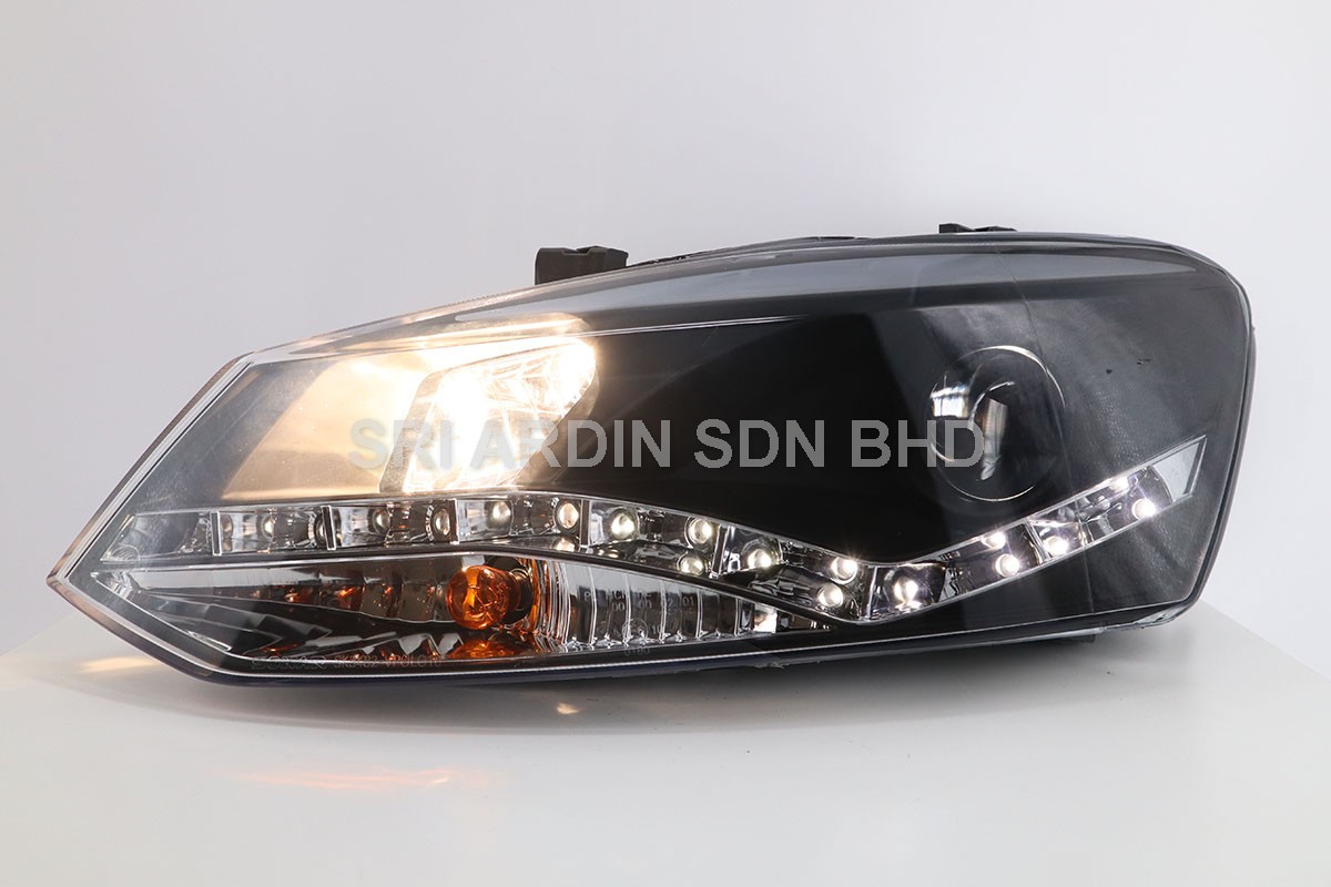 Volkswagen Polo 10- Black Projecor Headlamp w LED
