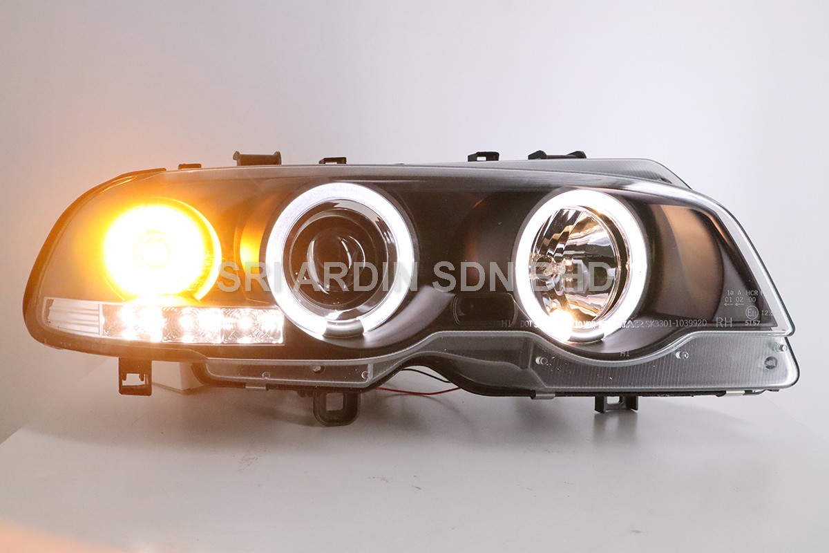 BMW E46 2D 99-02 Black Projector Headlamp w Ring