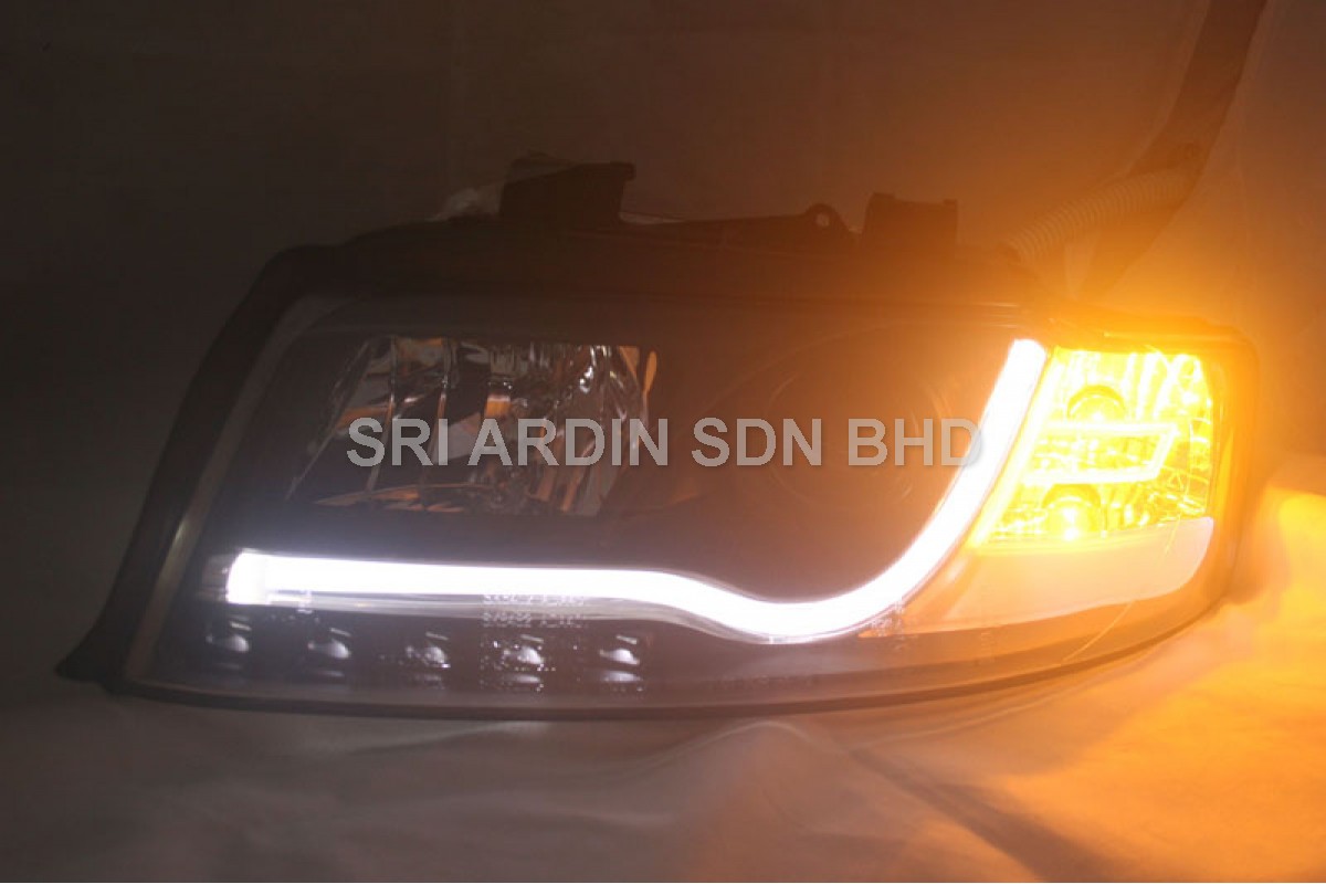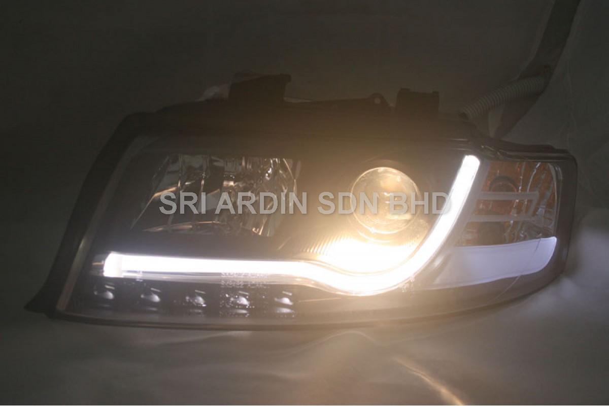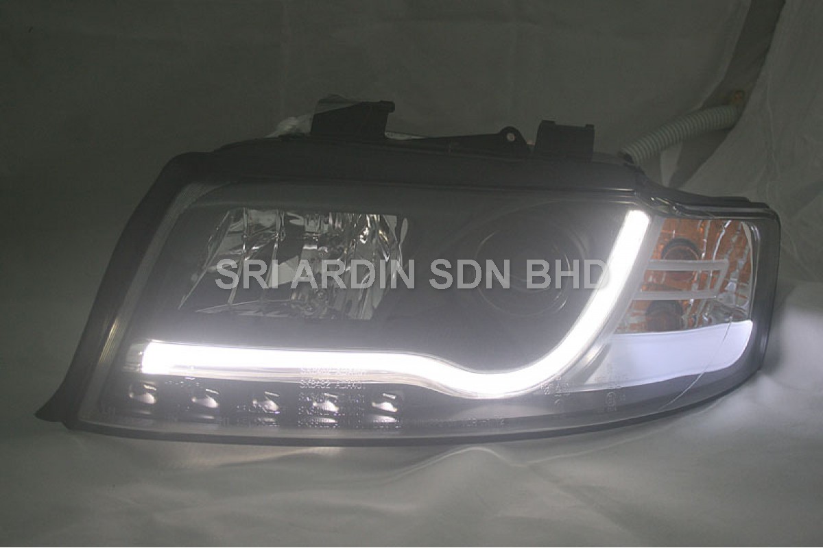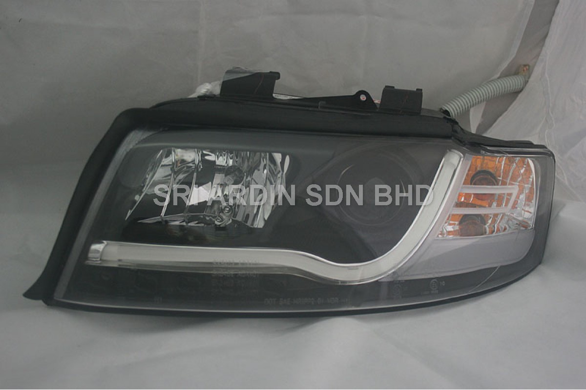AUDI A4 B6 01 BLACK PROJECTOR HEADLAMP w BAR & LED